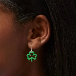 Buy ✨ Claire’s St. Patrick’s Day Glitter Shamrock 1″ Drop Earrings 🔔