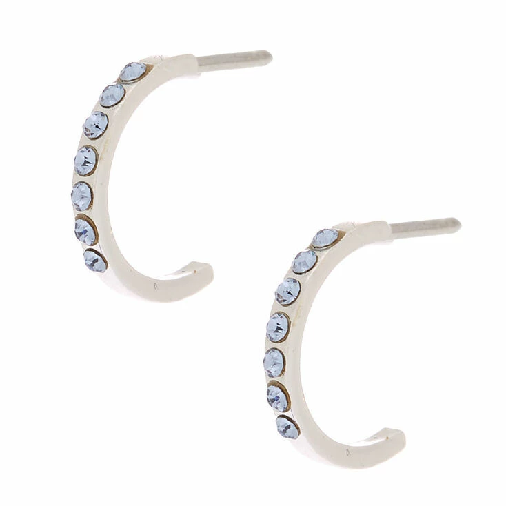 Sparkle and shine when you wear these sterling silver hoop earrings! Tiny, light icy blue stones add a bit of bling, too!